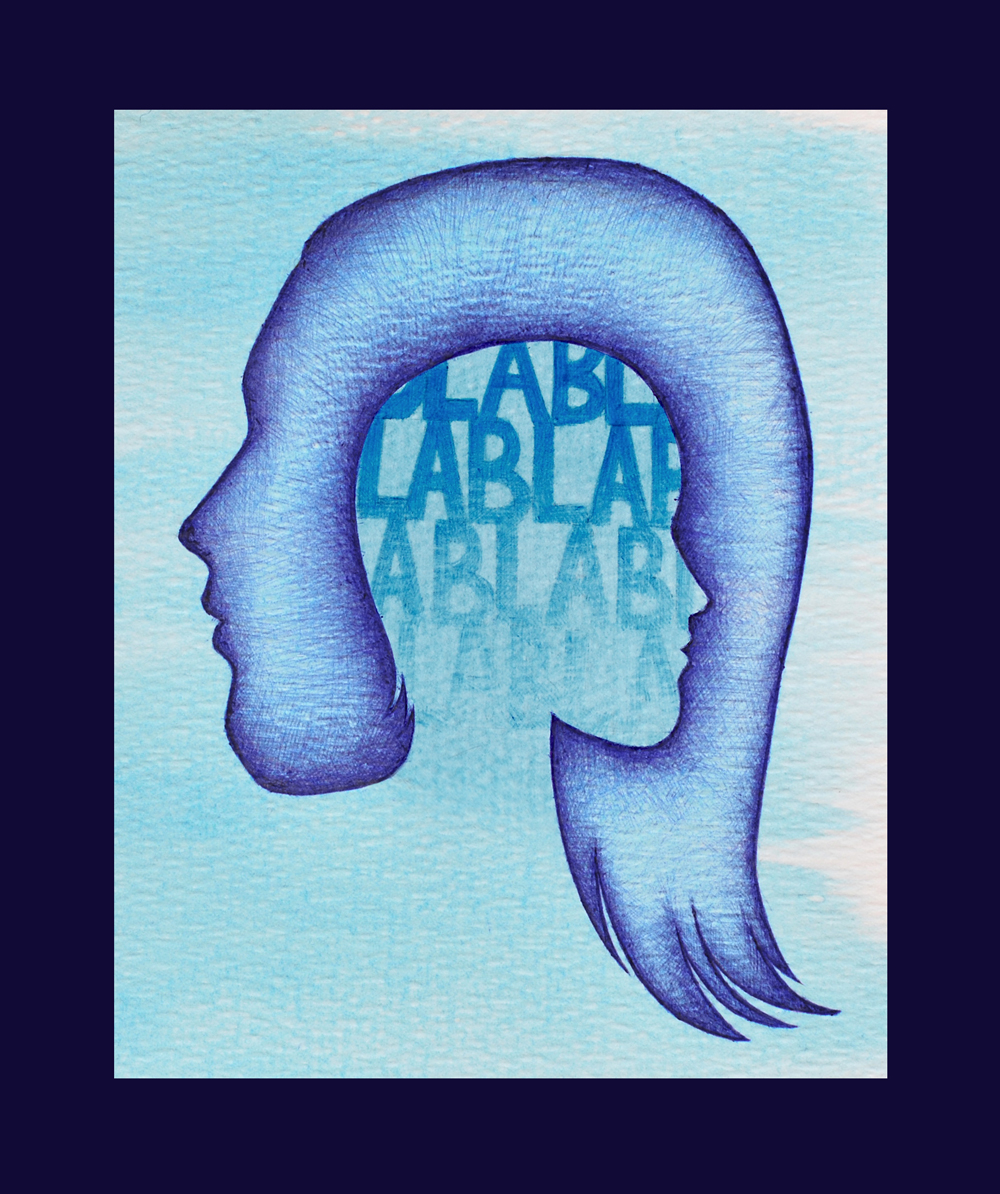 Se avete anche voi una vocina supercritica in testa, acquistate questo disegno come stampa, stampa con cornice, cover o skin per iphone/ipod, o T-shirt dal sito http://media.society6.com/ireneminissale/5–La-vocina-in-testa_Print
