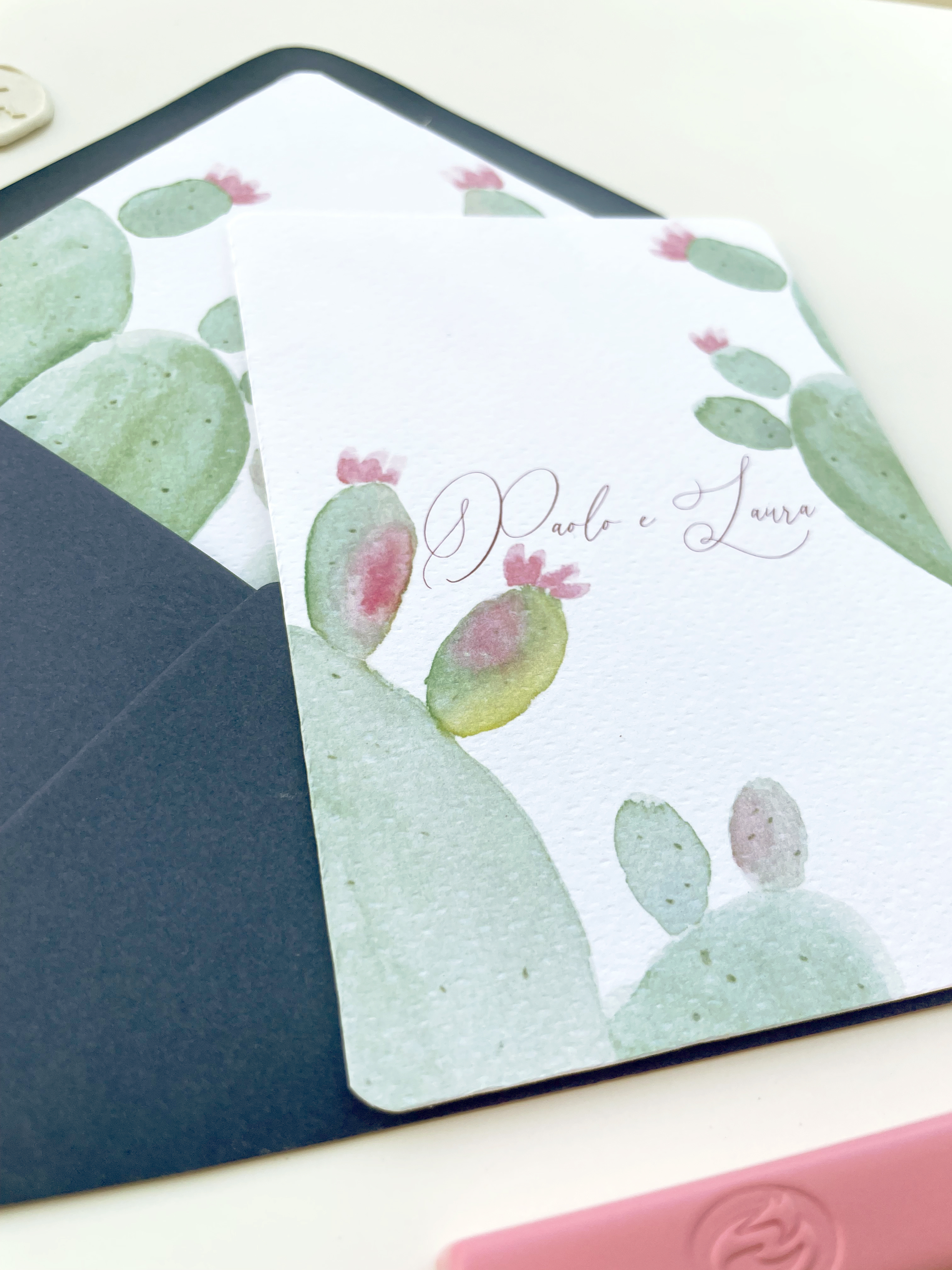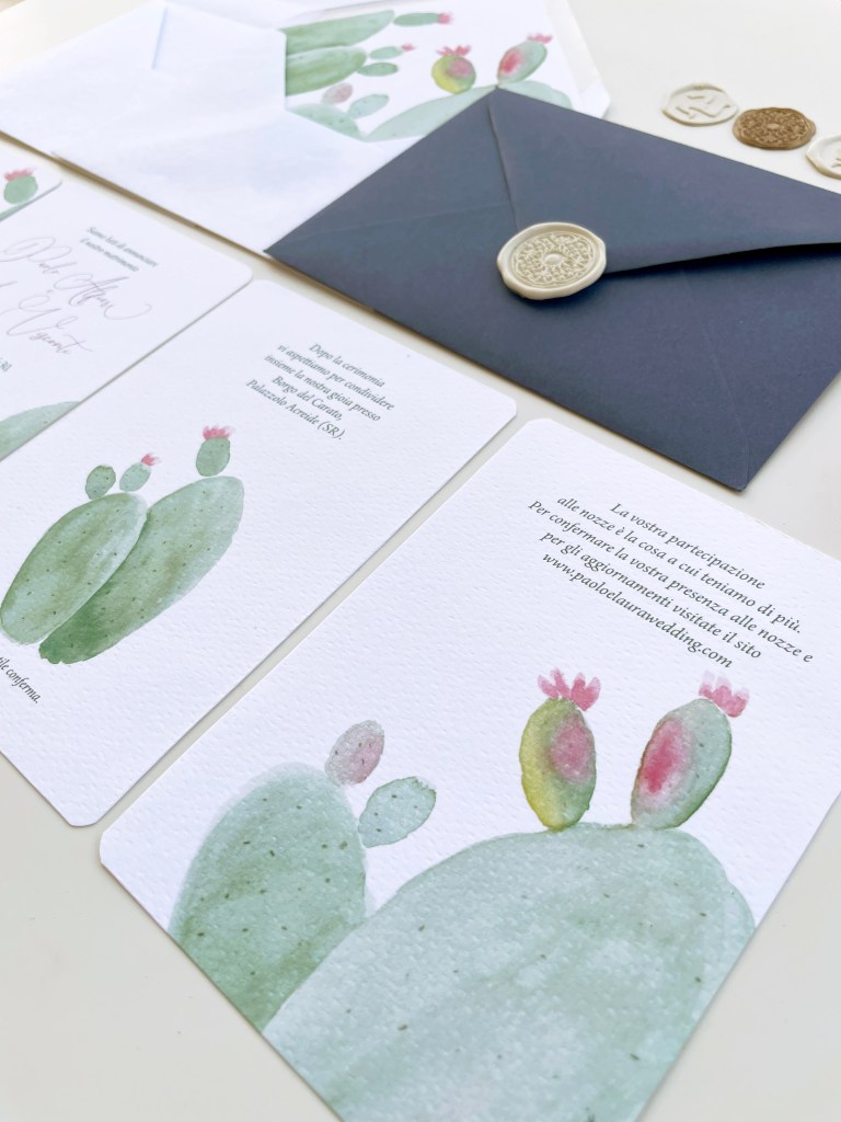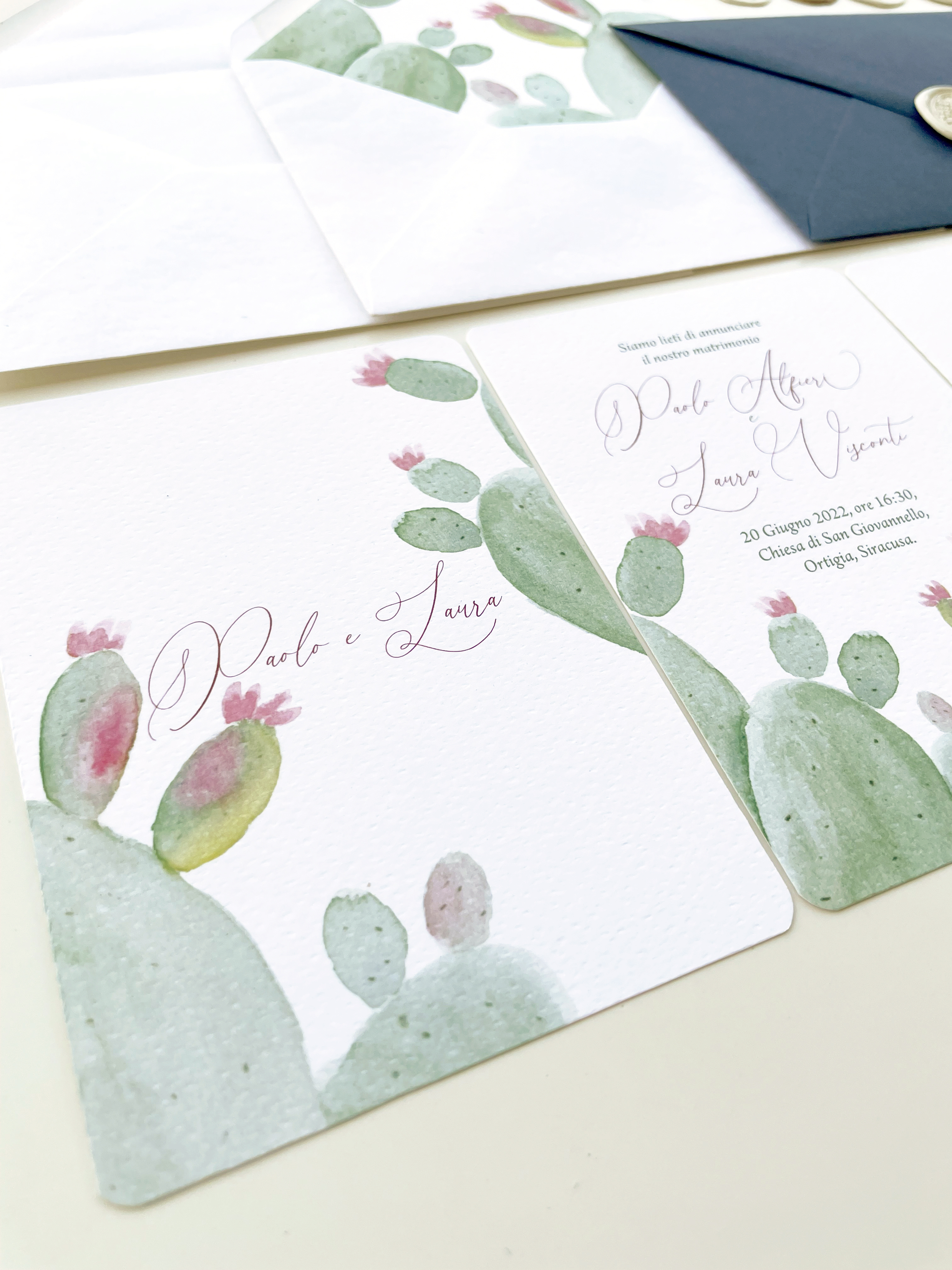 Due settimane fa ti ho presentato il tema della strelitzia tema nato per il catalogo sposi 2022, questa settimana invece ti mostro una riedizione del tema fichi d’india, già presente sul mio shop a partire dal 2015 (ma da quanti anni mi occupo di matrimoni?!?). Lo sentivo ormai distante e un po’ invecchiato, quindi ho avuto voglia di ridipingerlo.