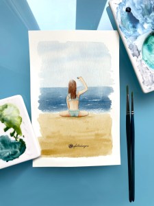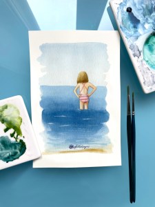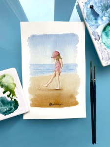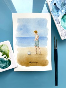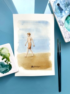 Ho dedicato una serie di illustrazioni intitolata “piccoli bagnanti”: ai bambini, coloro che più si godono la spiaggia in estate.