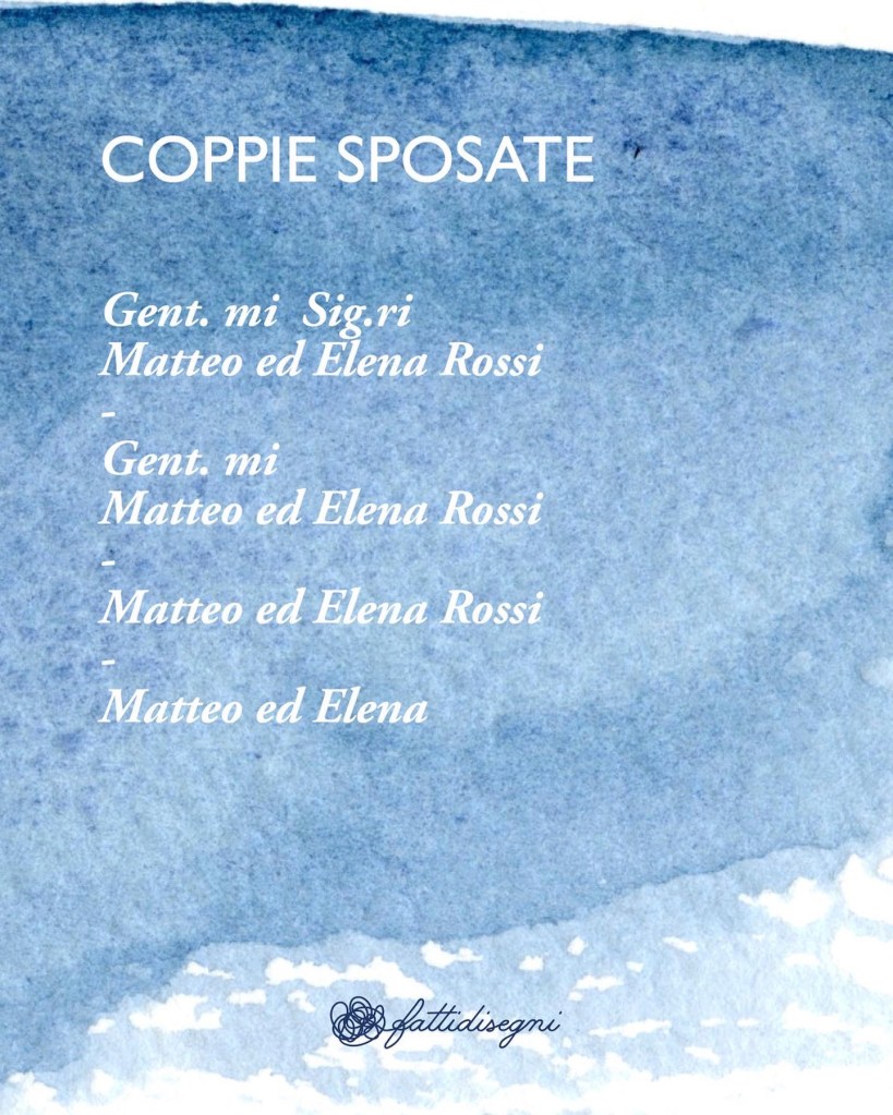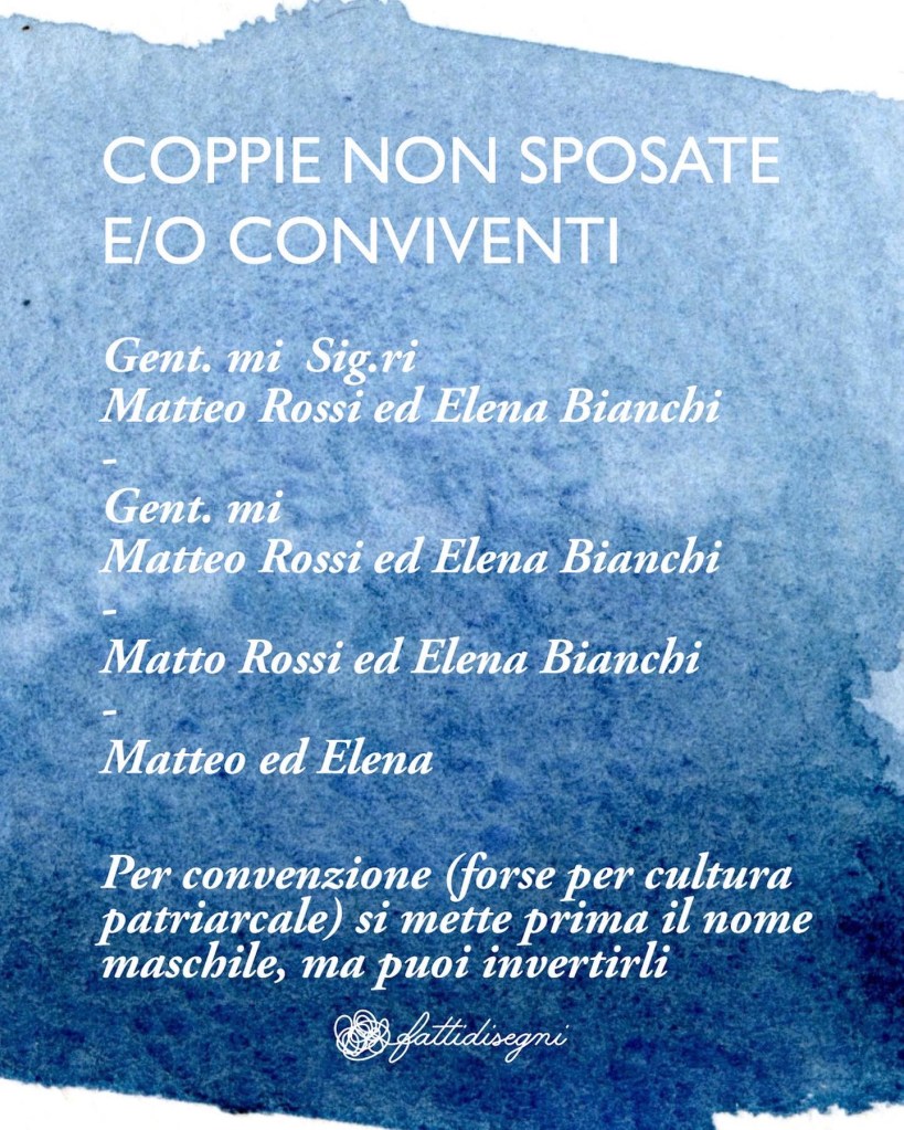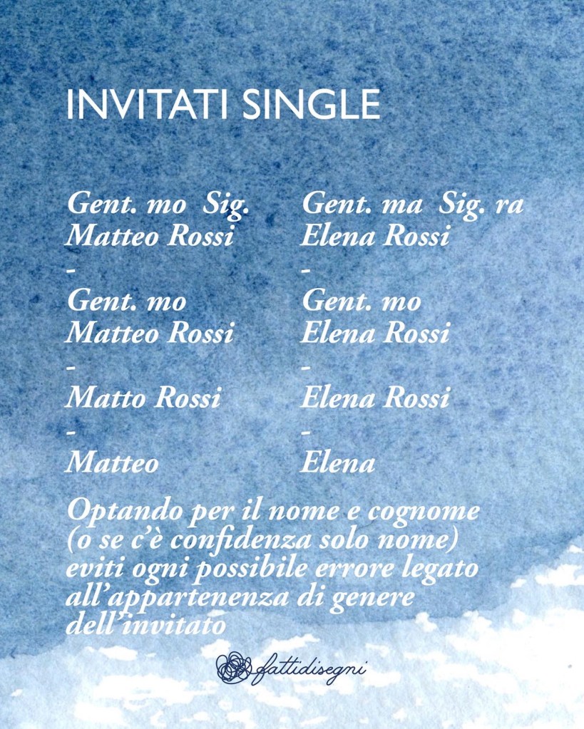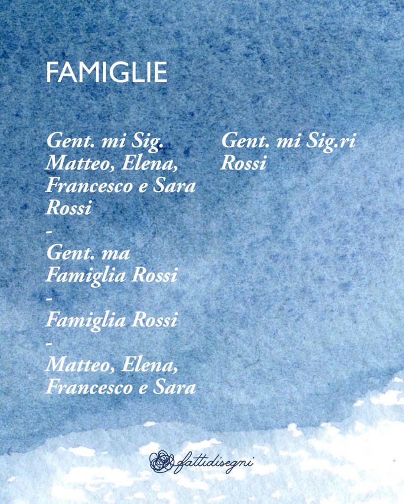 3️⃣ Gentilissimo, sig., Famiglia o solo i nomi? Nel carosello trovi uno schema, per ogni invitato valuta che livello di formalità usare
