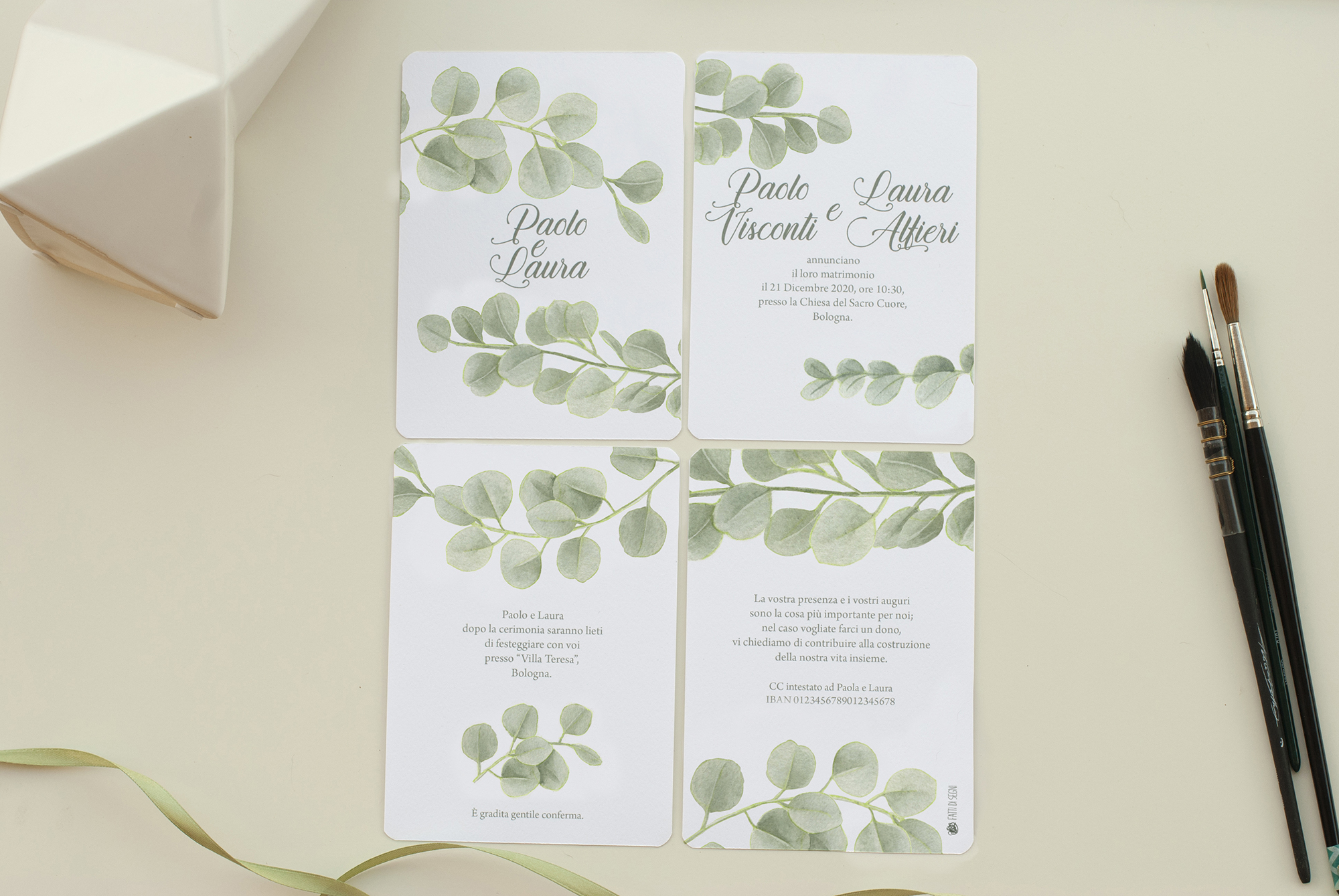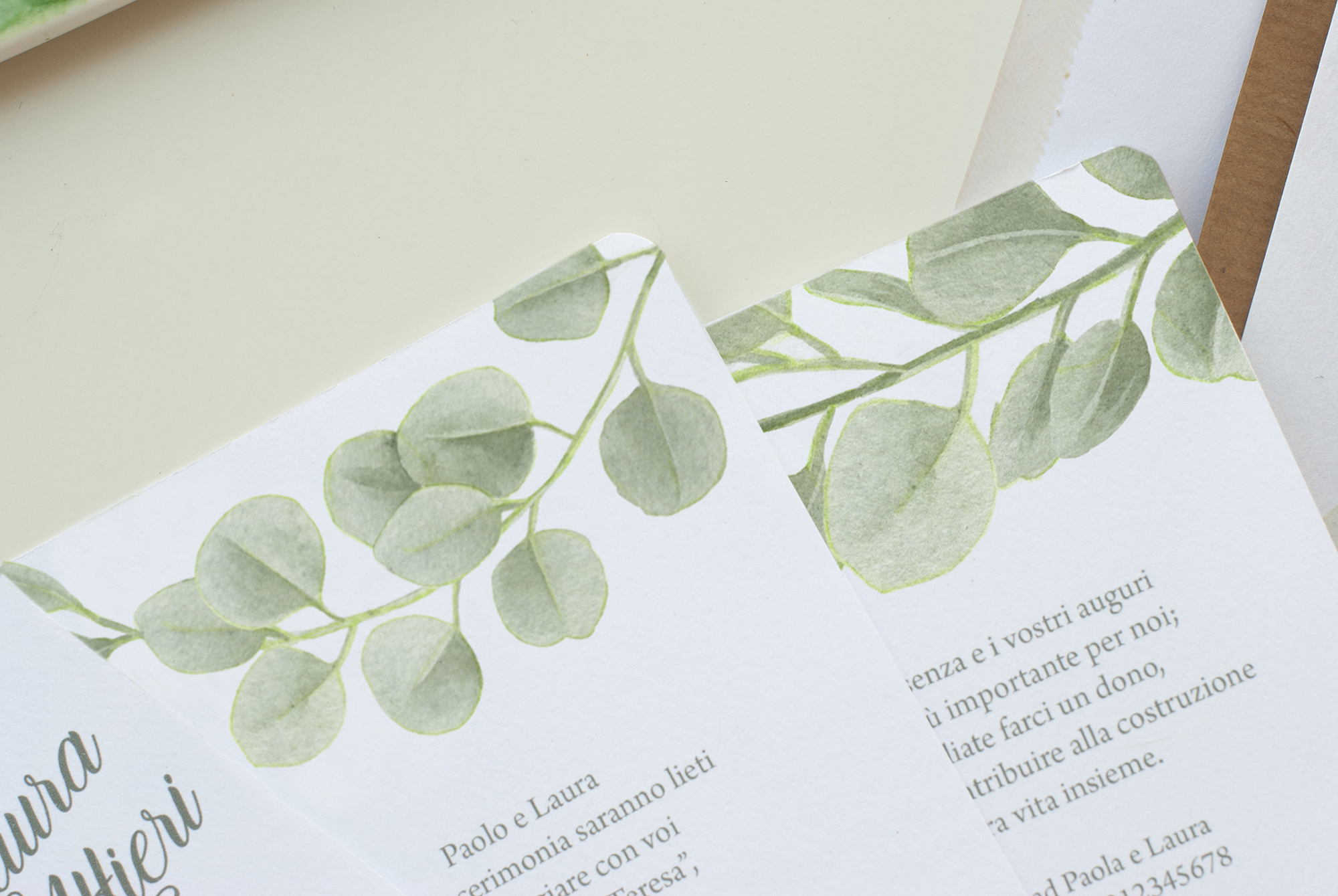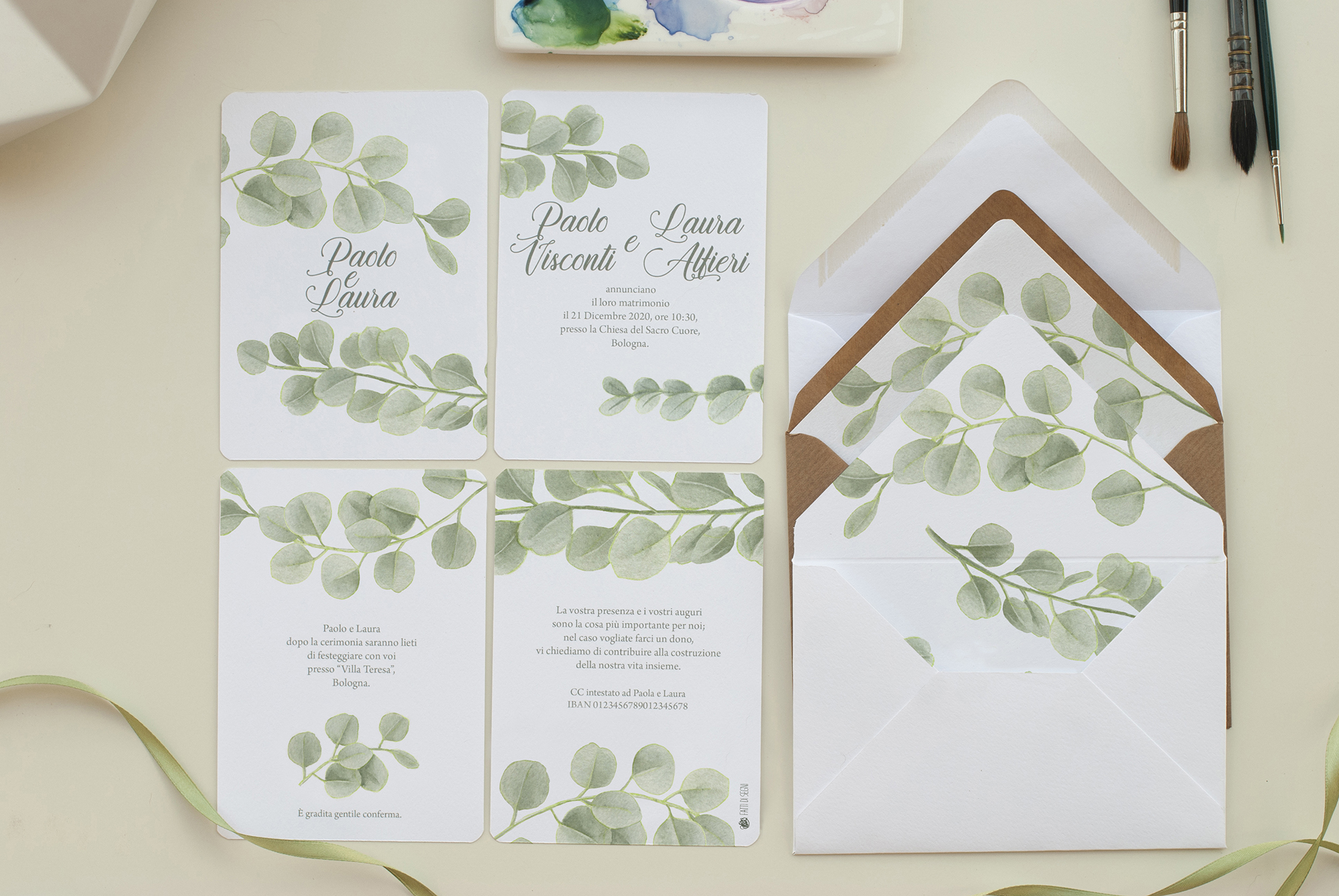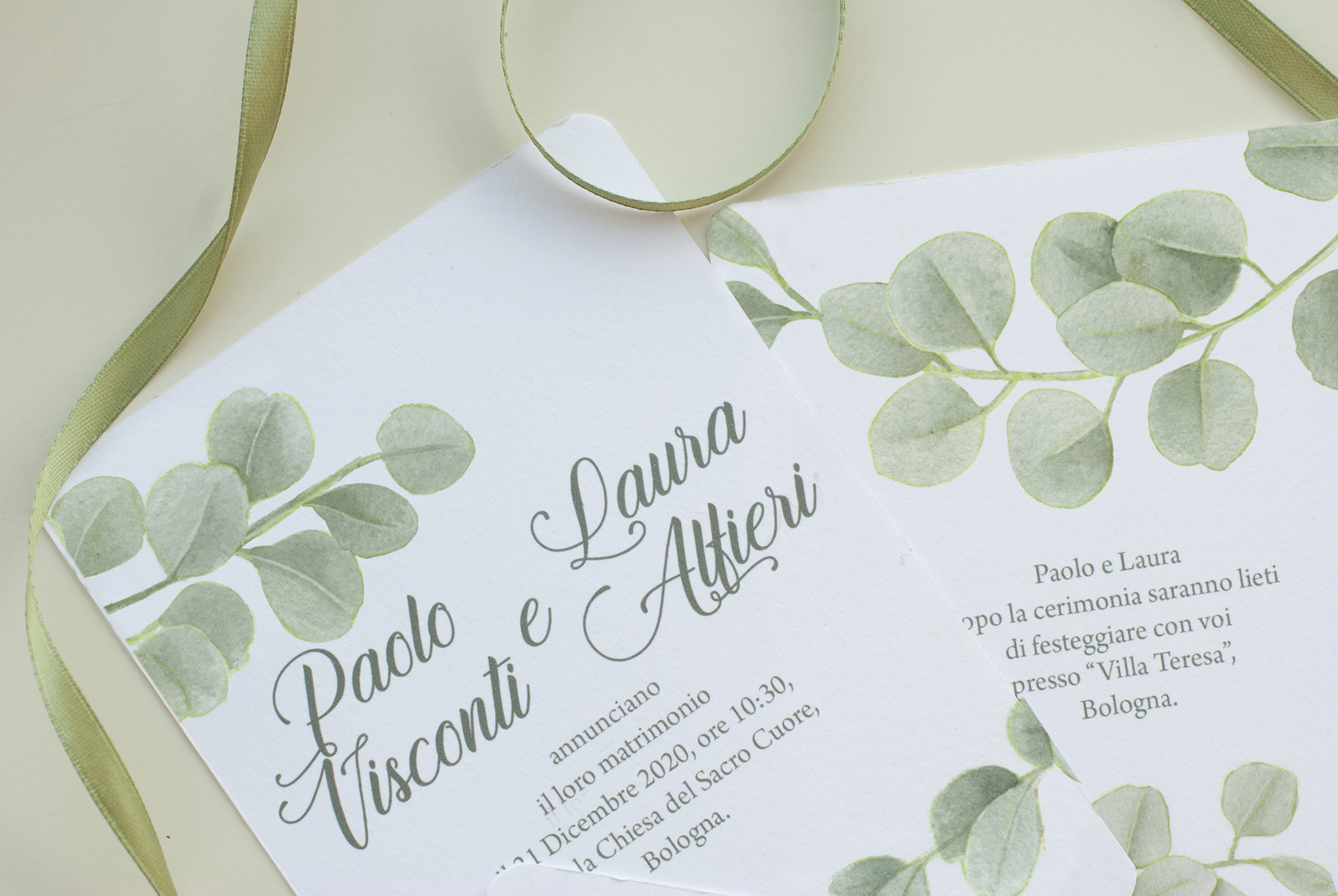 Ogni pagina della partecipazioni è stampata su carta vergata Prisma della Favini.