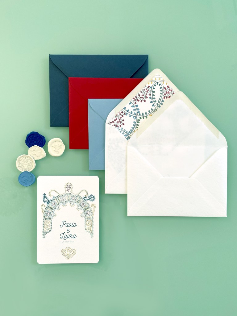 Ogni pagina della partecipazioni è stampata su carta vergata Prisma della Favini.