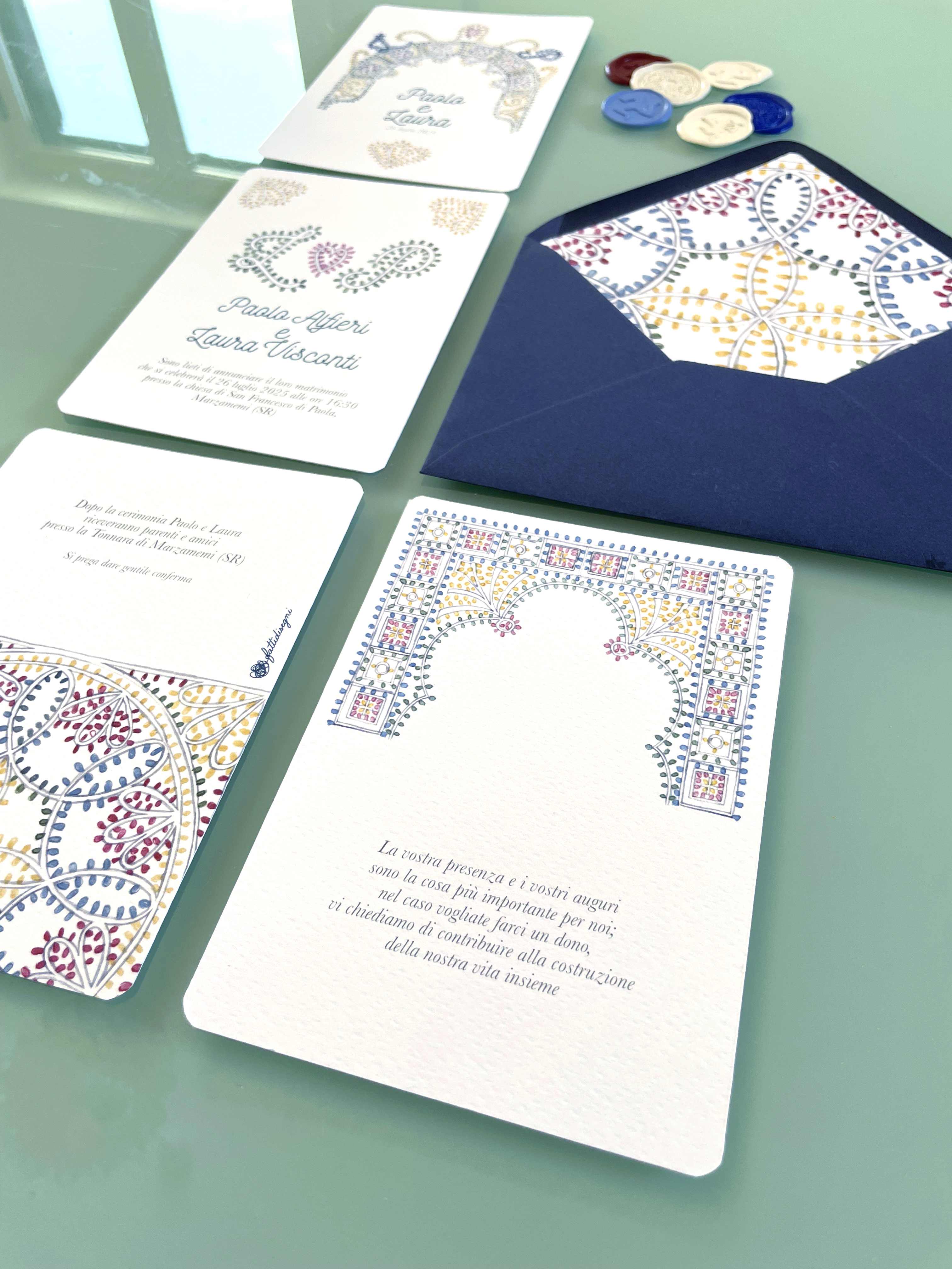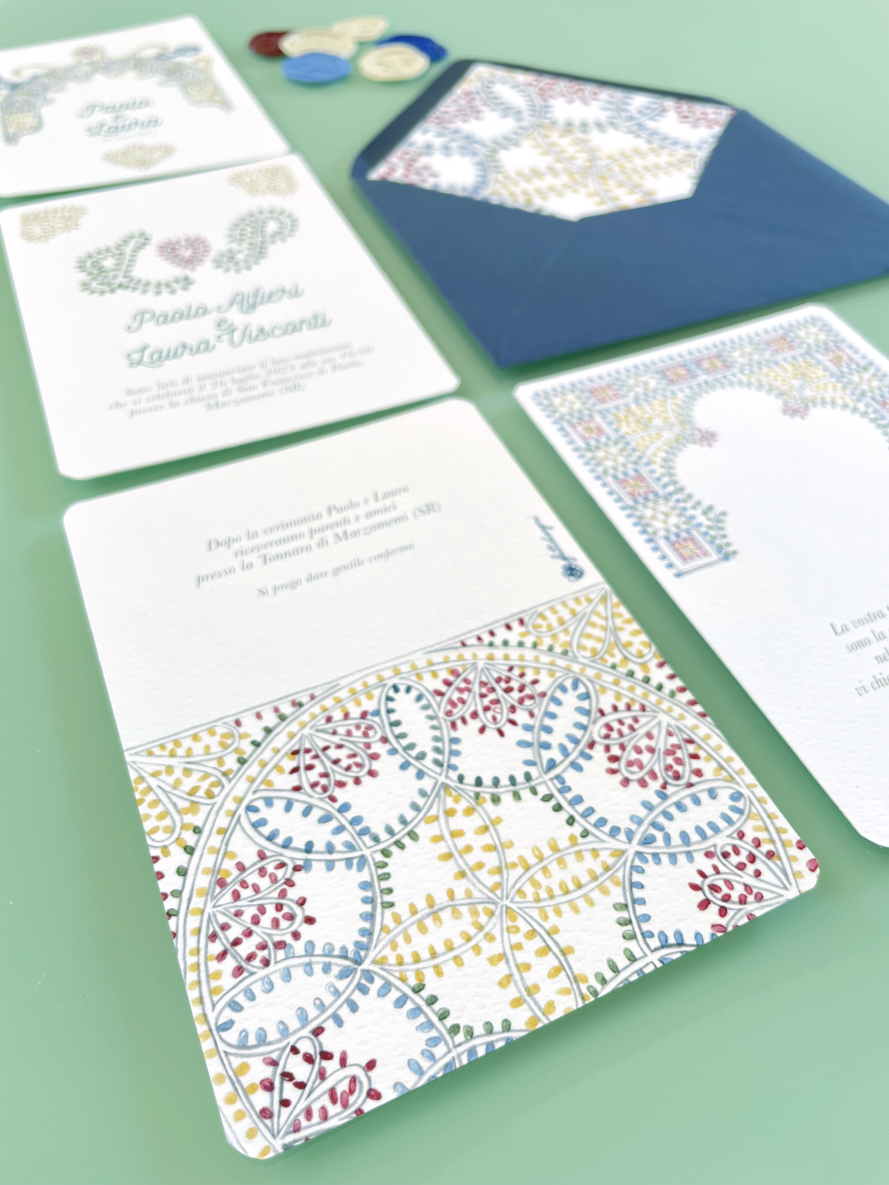 Ogni pagina della partecipazioni è stampata su carta vergata Prisma della Favini.