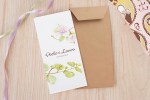 Per questa soluzione sono disponibili tre buste: quella standard bianca, la busta artigianale bianca con stampa della texture del tema sull’interno, oppure, la busta artigianale in carta craft rivestita internamente dalla stampa della texture del tema.