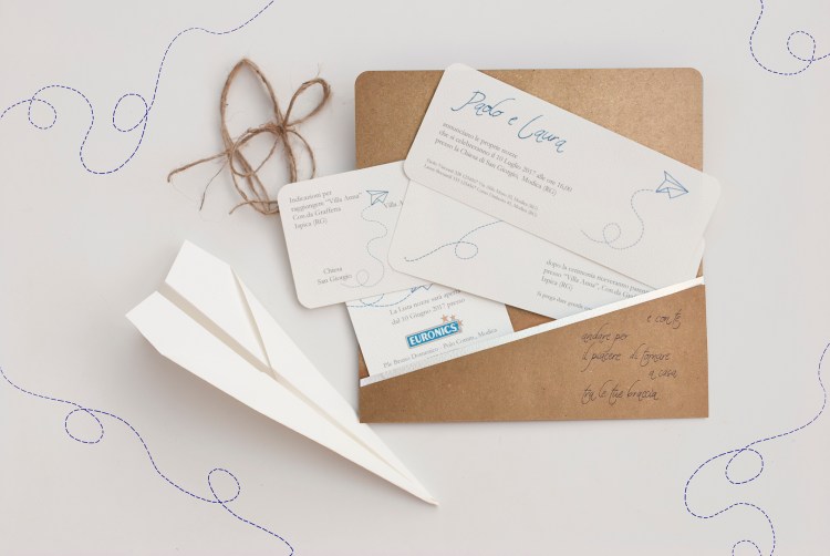 Può comprendere le partecipazioni, l’invito, una mappa per le indicazioni stradali di ristorante e Chiesa, un biglietto con i riferimenti della lista nozze, il biglietto dei confetti, i confetti, il menù, il coprimessale, il tableau, i segnaposto, i segnatavolo, i centrotavola, i portariso, le bomboniere e le decorazioni.
